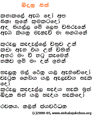 ©2000-2014, Sinhala Jukebox - A Jukebox of Songs from Sri Lanka.