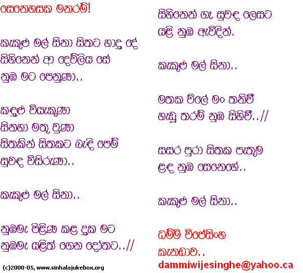 ©2000-2014, Sinhala Jukebox - A Jukebox of Songs from Sri Lanka.