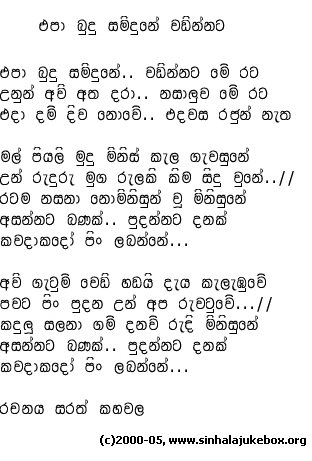 ©2000-2014, Sinhala Jukebox - A Jukebox of Songs from Sri Lanka.