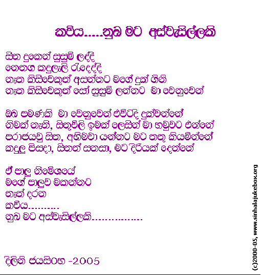 Let us know if you'd like your work to be listed in Sinhala Jukebox! Write to webmaster.