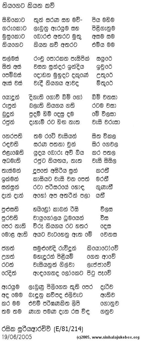 You are hereby invited to submit "Geetha Katha" for possible publication in this page. We reserve the rights to choose what will be presented, yet submitter is responsible for the content and not the page maintainers. We welcome all forms of creative work including but not limited to short stories, jokes, poems, and satire either in Sinhala and/or English.