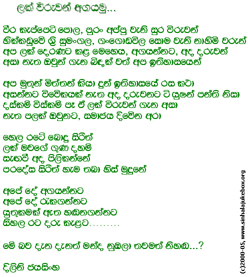©2000-2014, Sinhala Jukebox - A Jukebox of Songs from Sri Lanka.