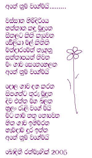 You are hereby invited to submit "Geetha Katha" for possible publication in this page. We reserve the rights to choose what will be presented, yet submitter is responsible for the content and not the page maintainers. We welcome all forms of creative work including but not limited to short stories, jokes, poems, and satire either in Sinhala and/or English.