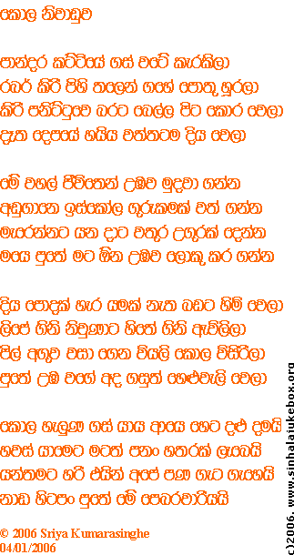 Let us know if you'd like your work to be listed in Sinhala Jukebox! Write to webmaster.