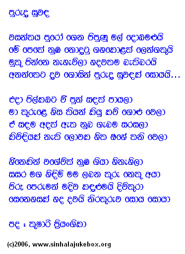 ©2000-2014, Sinhala Jukebox - A Jukebox of Songs from Sri Lanka.
