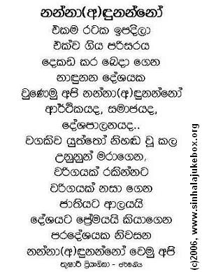 You are hereby invited to submit "Geetha Katha" for possible publication in this page. We reserve the rights to choose what will be presented, yet submitter is responsible for the content and not the page maintainers. We welcome all forms of creative work including but not limited to short stories, jokes, poems, and satire either in Sinhala and/or English.