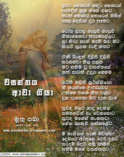 You are hereby invited to submit "Geetha Katha" for possible publication in this page. We reserve the rights to choose what will be presented, yet submitter is responsible for the content and not the page maintainers. We welcome all forms of creative work including but not limited to short stories, jokes, poems, and satire either in Sinhala and/or English.